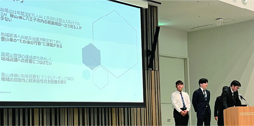 日頃の学習成果を活かし、AIをはじめとするデジタル技術を使って八王子の課題を発見し、それと向き合い、社会に貢献するという知的活動を通して、ビジネスを改革するアイデア創出というテーマで論理的思考力や創造性、問題解決能力を競います。既存の概念にとらわれない、独創的かつ実用的なアイデアを形にして、披露していただく場です。